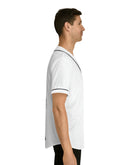 All-over prints make the crowd go wild - add yours now to this men's AOP baseball jersey & create an instant classic. Featuring a full-button front and a rounded hem, these tees feature moisture-wicking fabric that keeps you cool when under pressure. Choose between a white or black trim color and buttons, add your design, and make it uniquely yours.