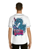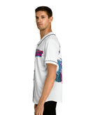 All-over prints make the crowd go wild - add yours now to this men's AOP baseball jersey & create an instant classic. Featuring a full-button front and a rounded hem, these tees feature moisture-wicking fabric that keeps you cool when under pressure. Choose between a white or black trim color and buttons, add your design, and make it uniquely yours.