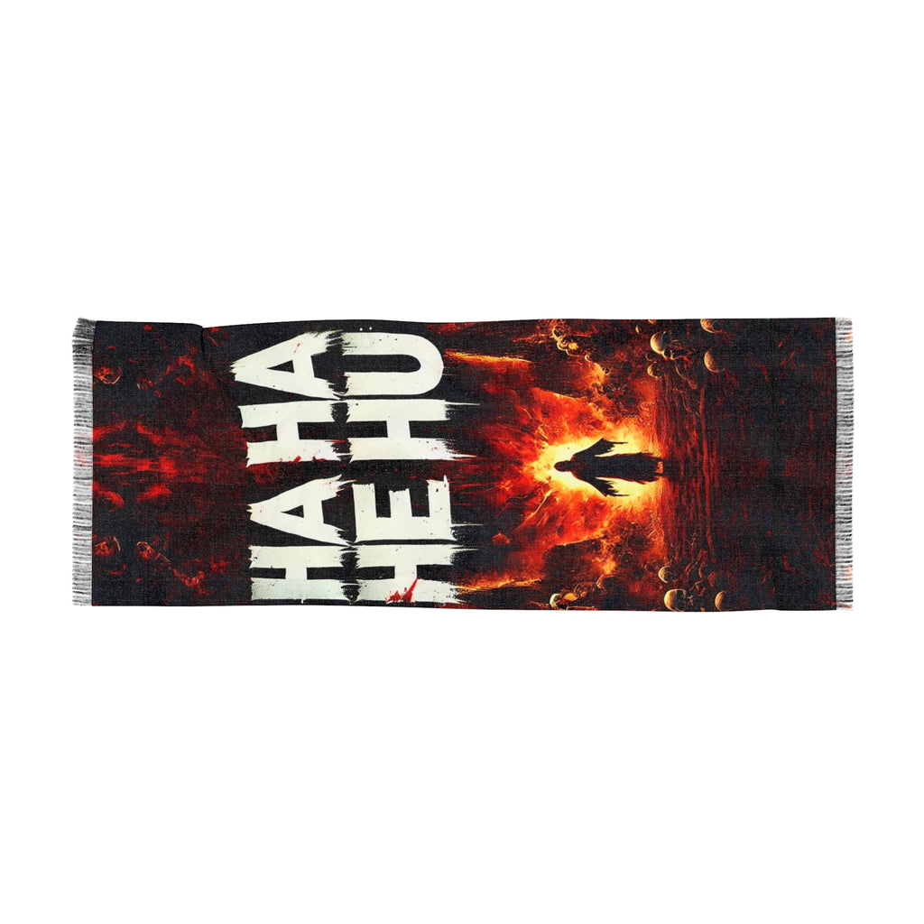 The 'Ha Ha He Hu Riddim' Lightweight Scarf is a fun and vibrant accessory that adds a playful touch to any outfit. Made of 100% Polyester, this scarf is soft, lightweight, and perfect for accessorizing. The semi-translucent pri...