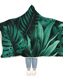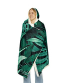 Exotic Monstera Banana And Palm Leaves Dye Snuggle Hooded Blanket