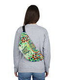 Retro EDM Artist Sling Bag Fanny Pack with vibrant colors and adjustable waist belt. Perfect for music festivals, concerts, and traveling. Ideal for those who love to keep their essentials organized and easily accessible.