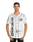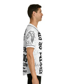 All-over prints make the crowd go wild - add yours now to this men's AOP baseball jersey & create an instant classic. Featuring a full-button front and a rounded hem, these tees feature moisture-wicking fabric that keeps you cool when under pressure. Choose between a white or black trim color and buttons, add your design, and make it uniquely yours.