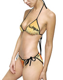This bikini swimsuit is designed for fashionable women, it is stylish with a personalized touch. Because of an advance heat sublimation technique, it will not fade in water.