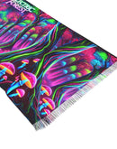 Electric Forest EDM Lightweight Pashmina scarf with vibrant colors and semi-translucent print. Perfect for accessorizing and adding a touch of fun to your outfit. Ideal for music festivals, concerts, and outdoor events.
