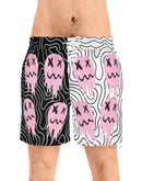 Trippy Ghost Swim Shorts designed for rave enthusiasts. These shorts give off a fun and funky vibe, perfect for pool parties, beach days, and music festivals. Ideal for men looking for a unique statement piece to wear while swimming, running, or just lounging around.