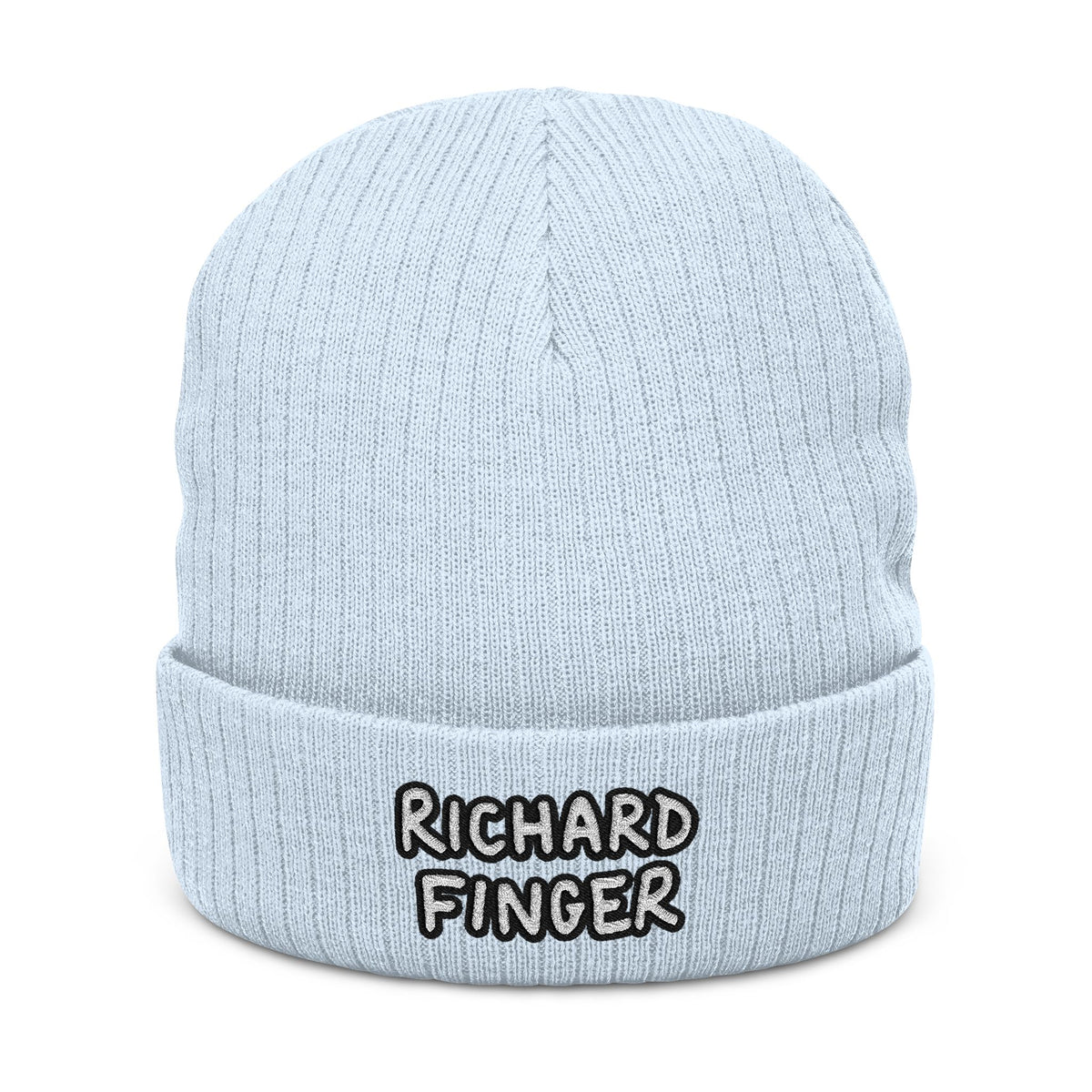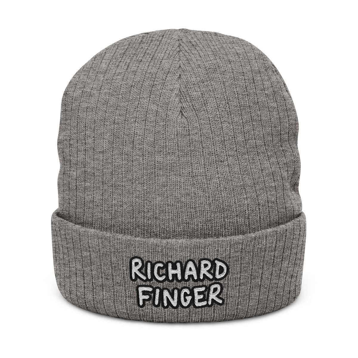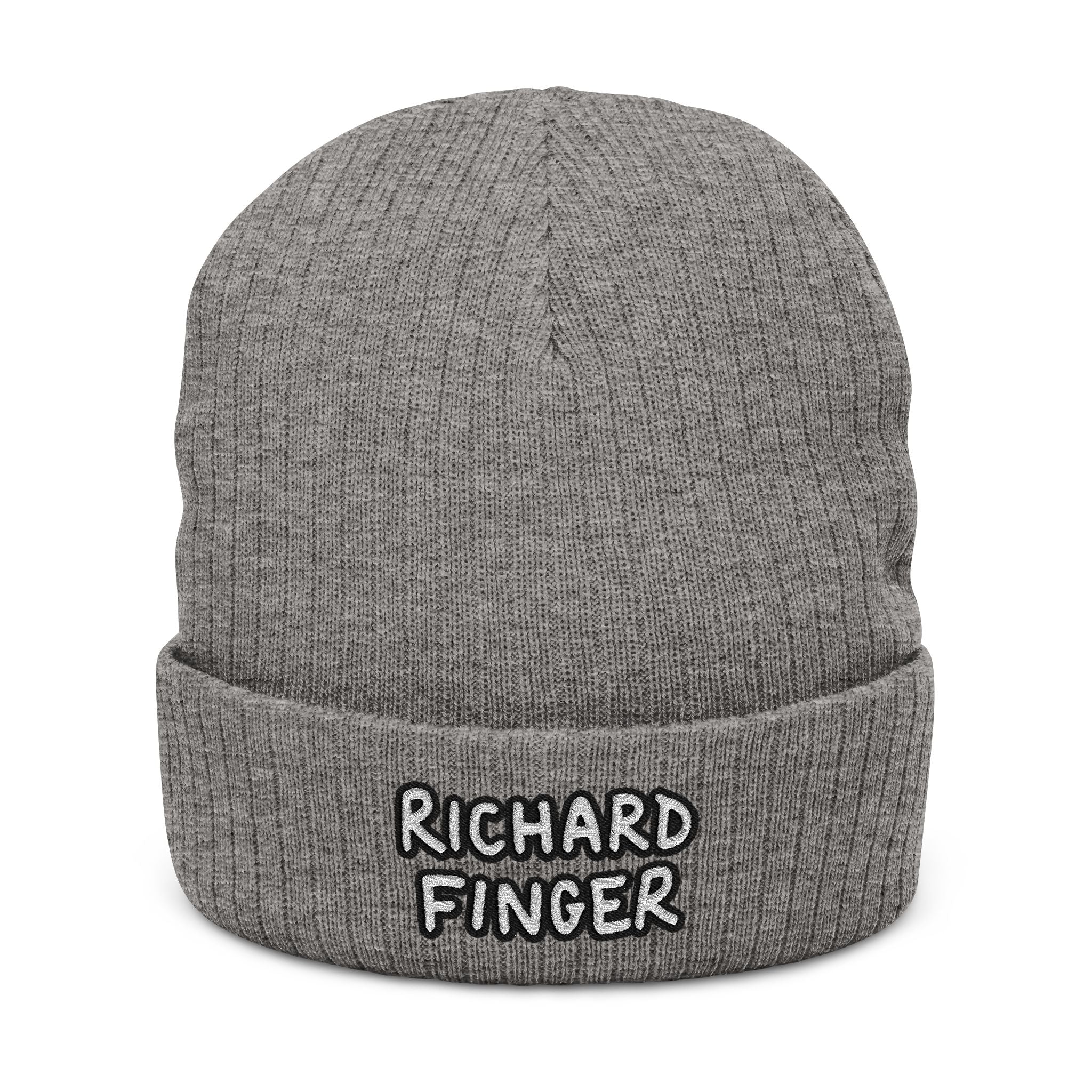 Richard Finger Embroidered Ribbed Knit Beanie, Cozy Winter Accessory, Unique Gift for Him, Casual Street Style, Beanie for Outdoor Activities