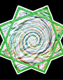 Add a burst of color and energy to your space with this handcrafted starburst quilted table topper. Featuring a mesmerizing spiral pattern in watercolor tones of green, aqua, lavender, and coral, this unique piece is framed in a bold green border and shaped with eight pointed edges for a modern geometric flair. Perfect for brightening up your dining table, coffee table, or entryway display, this decorative topper blends artistic design with cozy craftsmanship. Machine quilted for texture and durability—one-of-a-kind and made to stand out.