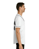 All-over prints make the crowd go wild - add yours now to this men's AOP baseball jersey & create an instant classic. Featuring a full-button front and a rounded hem, these tees feature moisture-wicking fabric that keeps you cool when under pressure. Choose between a white or black trim color and buttons, add your design, and make it uniquely yours.