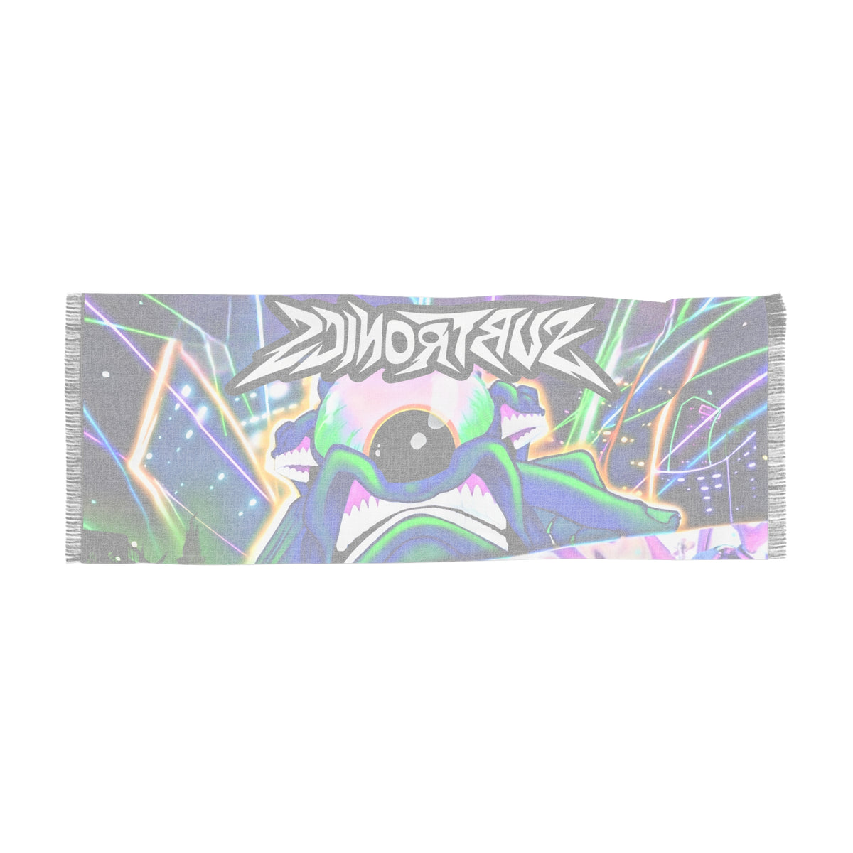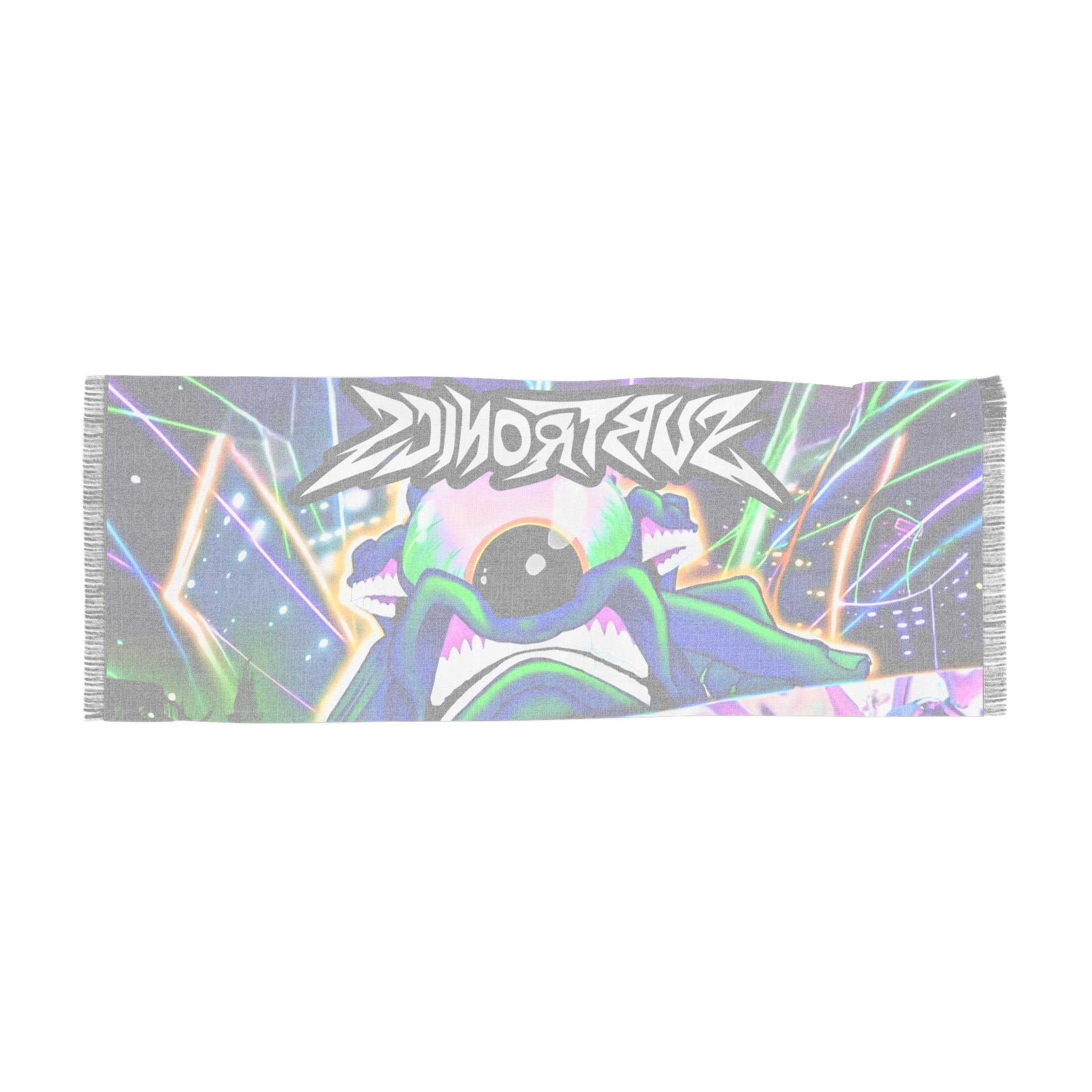 A lightweight pashmina-style scarf inspired by Subtronics’ bold, high-energy aesthetic. The long, flowing silhouette drapes easily around the neck or shoulders, lending movement and color to concert fits, late-night sets, or everyday streetwear. The semi-translucent, single-sided print gives a layered, slightly ethereal effect when wrapped, letting color peek through without overwhelming the look. Soft, fast-drying polyester keeps the scarf feeling airy and comfortable while standing up to repeat wear and travel. Wear it to add a lively, tactile statement to festival outfits, studio sessions, or nights out with fellow bass music lovers.
