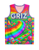 Crafted from premium, breathable fabric, this jersey ensures comfort during any activity, whether you're dancing at a festival, shooting hoops, or just rocking it as streetwear. The GRIZ Basketball Jersey (Candy Land Theme) is more than just apparel – it’s a celebration of fun, freedom, and the sweet life. Get ready to stand out and spread the good vibes wherever you go!