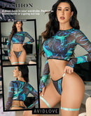 Unique Design: Sheer long sleeve top with thumb holes to keep sleeves in place. The matching bra and panties have adjustable straps to better fit your body curves. Two thigh rings increase your wild beauty