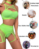 Perfect Design: Festival outfits for women cutout sheer fishnet rave top combined with high waist booty shorts bottom show off your stunning figure. Also the rave sets women babydoll pajamas along with choker and garters make you look even more hot and charming.