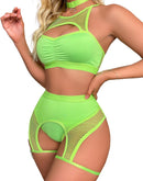 Package Includes: 1xFishnet Cutout Crop Top, 1x Booty Shorts and stylish Choker. Hand wash in cold water for best care, do not bleach or iron.