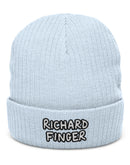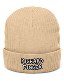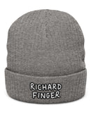 Richard Finger Embroidered Ribbed Knit Beanie, Cozy Winter Accessory, Unique Gift for Him, Casual Street Style, Beanie for Outdoor Activities